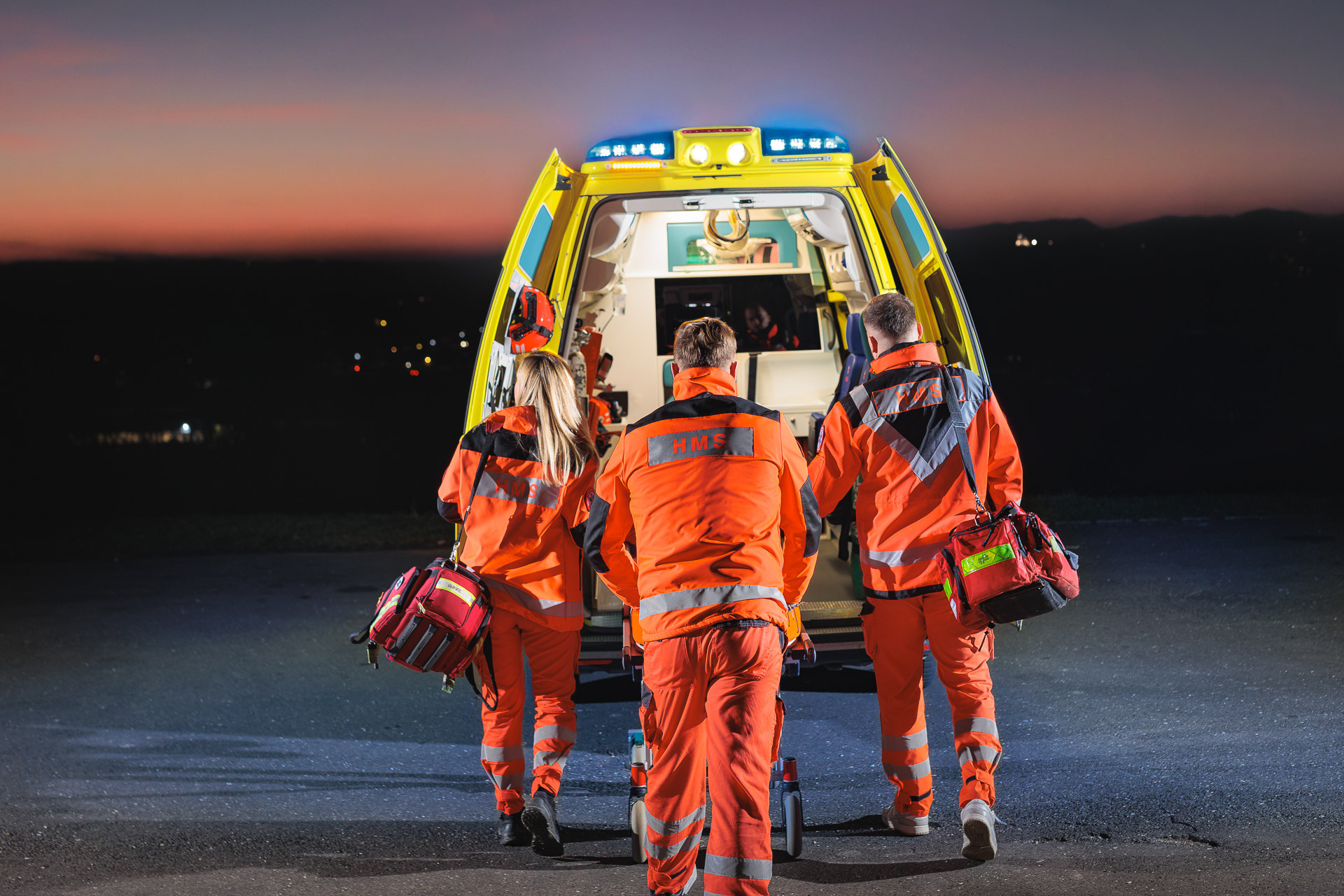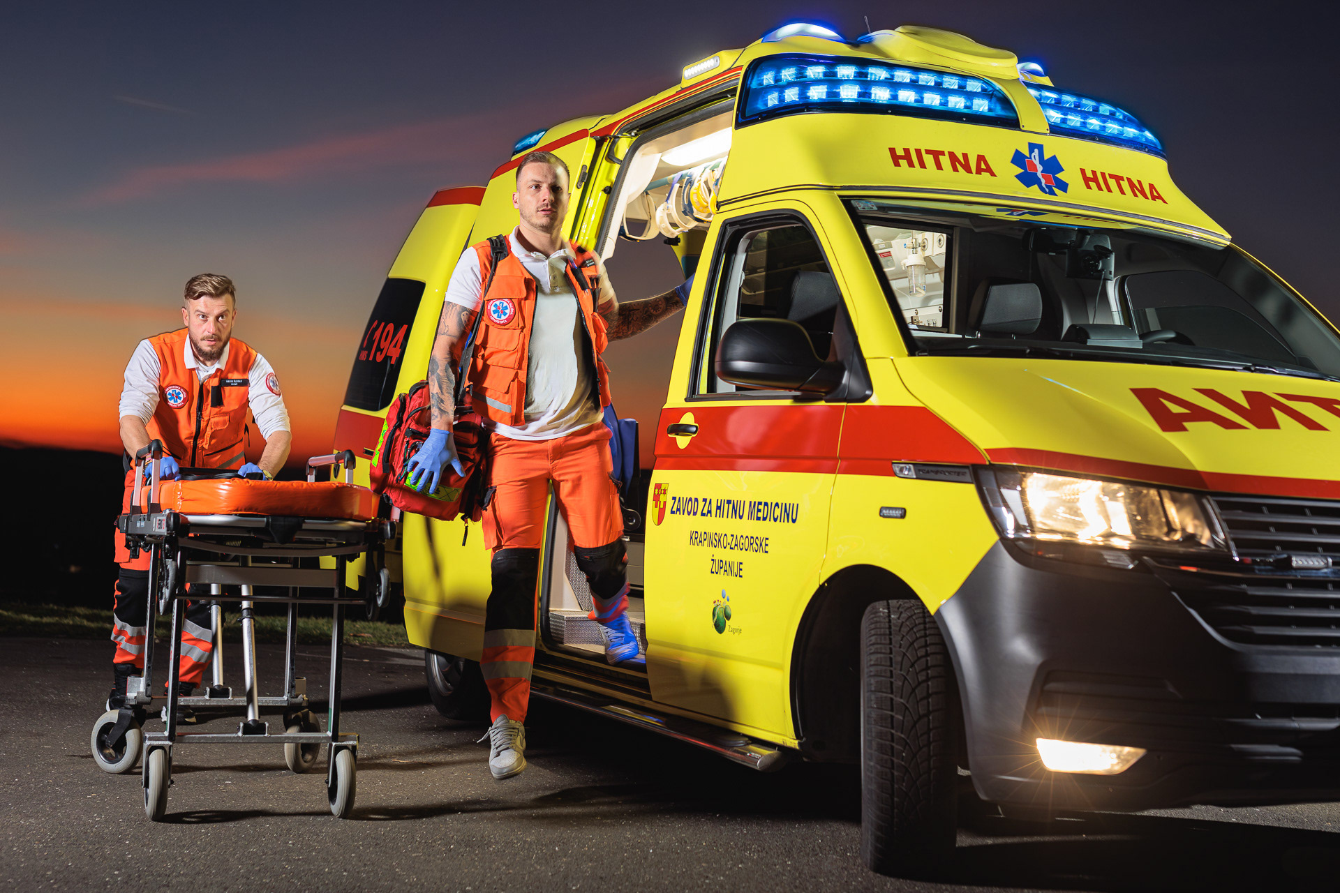 Fotografije simulacije intervencije za Zavod za hitnu medicinu Krapinsko-zagorske županije. Izuzetno zanimljivo i kompleksno fotografiranje zbog uskog vremenskog prostora u periodu zalaska sunca, unutar kojega je bilo moguće dobiti željeni rezultat u smislu idealnih ambijentalnih uvjeta - niskog sunca i boje neba nakon zalaska.